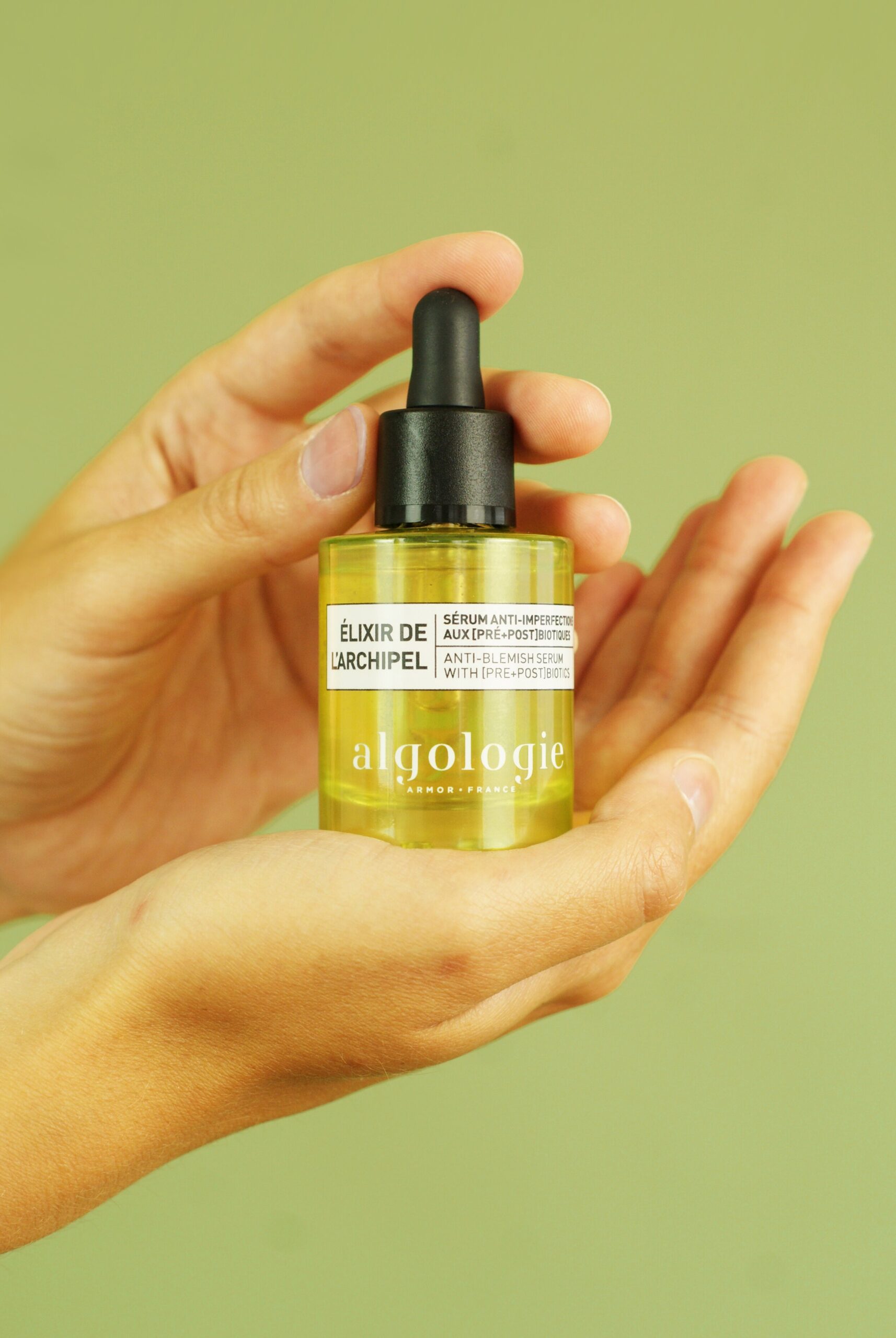 L’Élixir de l’Archipel, à la texture fluide non grasse et ultra-fraîche, est enrichi en Prébiotique & Postbiotique marins pour réduire les imperfections, équilibrer et unifier la peau.