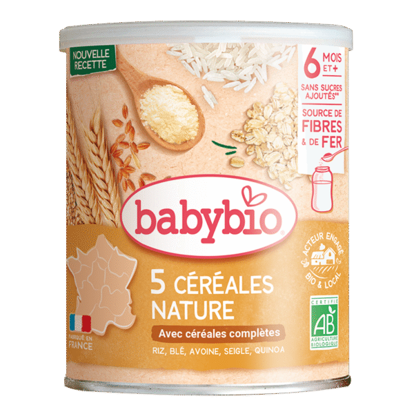 Une recette source de fer qui soutient le sytème immunitaire ! Avec de la vitamine B1, du fer et des céréales complètes bio (Riz, Blé, Avoine, Seigle, Quinoa) pour le bonheur de bébé. Quelques cuillères dans du lait infantile suffisent à régaler bébé. Conseil d’utilisation : Préparation dès 6 mois : au biberon 210 ml de lait infantile + 3 cuillères à soupe rase / en bouillie 210 ml de lait infantile + 7 cuillères à soupe rase 1 cuillère à soupe rase environ égale à 3 g de céréales
