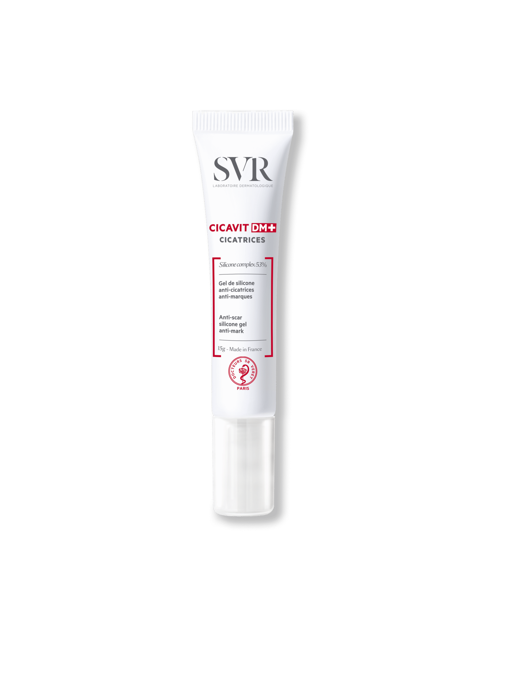 CICAVIT DM+ CICATRICES, dispositif médical. Gel de silicone anti-cicatrices, anti-marques, favorise la cicatrisation et réduit les cicatrices post-actes chirurgicaux ou dermatologiques. Apaise et soulage immédiatement les démangeaisons et diminue rougeurs et tiraillements. Texture transparente, douce, non grasse et non collante pour un film protecteur et réparateur.