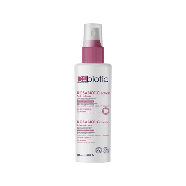 D-biotic Rosabiotic Lotion Soin intense est une lotion concentrée conçue pour atténuer les rougeurs sévères et la couperose. A base d’une synergie d’actifs exclusifs rougeurs et couperose, de la combinaison d’actifs pré-pro et post biotique et de 07 céramides.