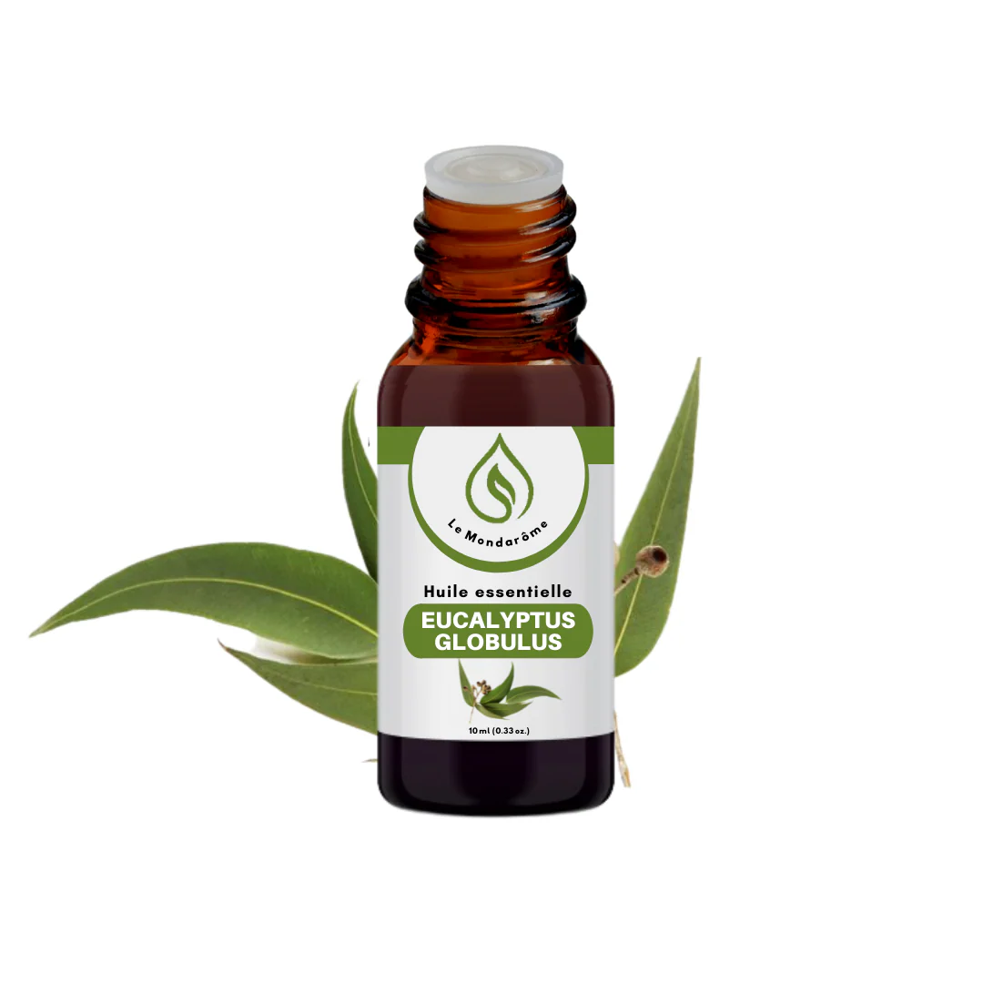 Huile essentielle 100 % pure et naturelle d’eucalyptus (Eucalyptus globulus). Organe distillé: feuilles. Extraction: distillation à la vapeur d’eau.